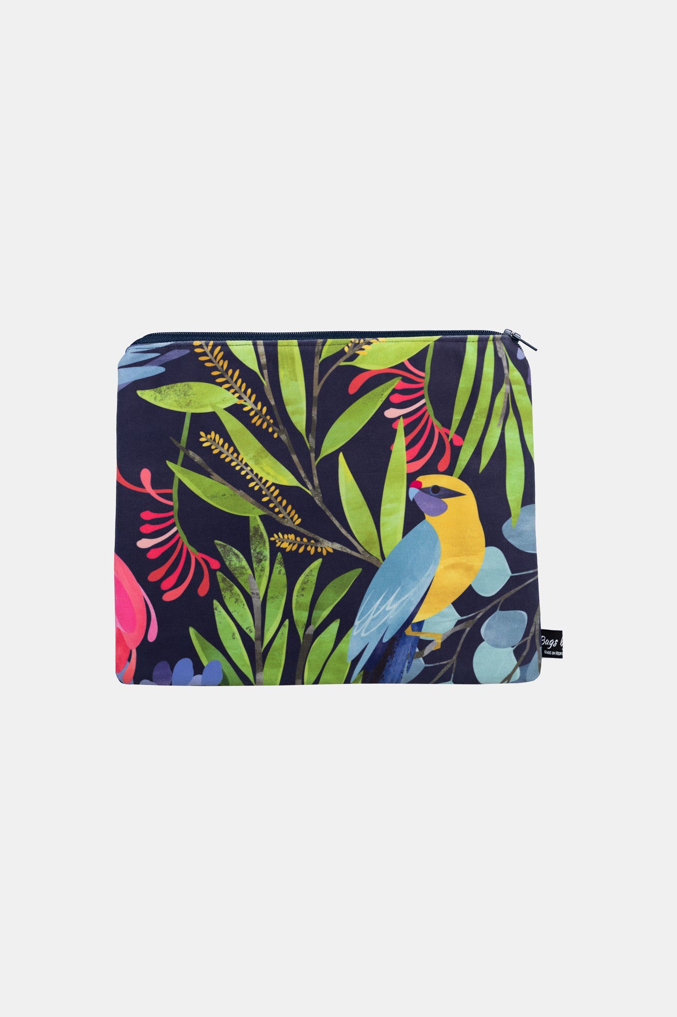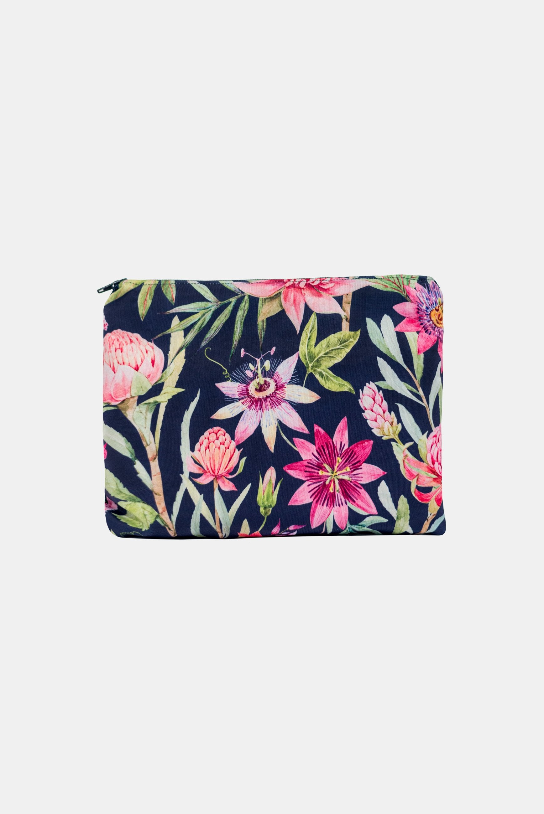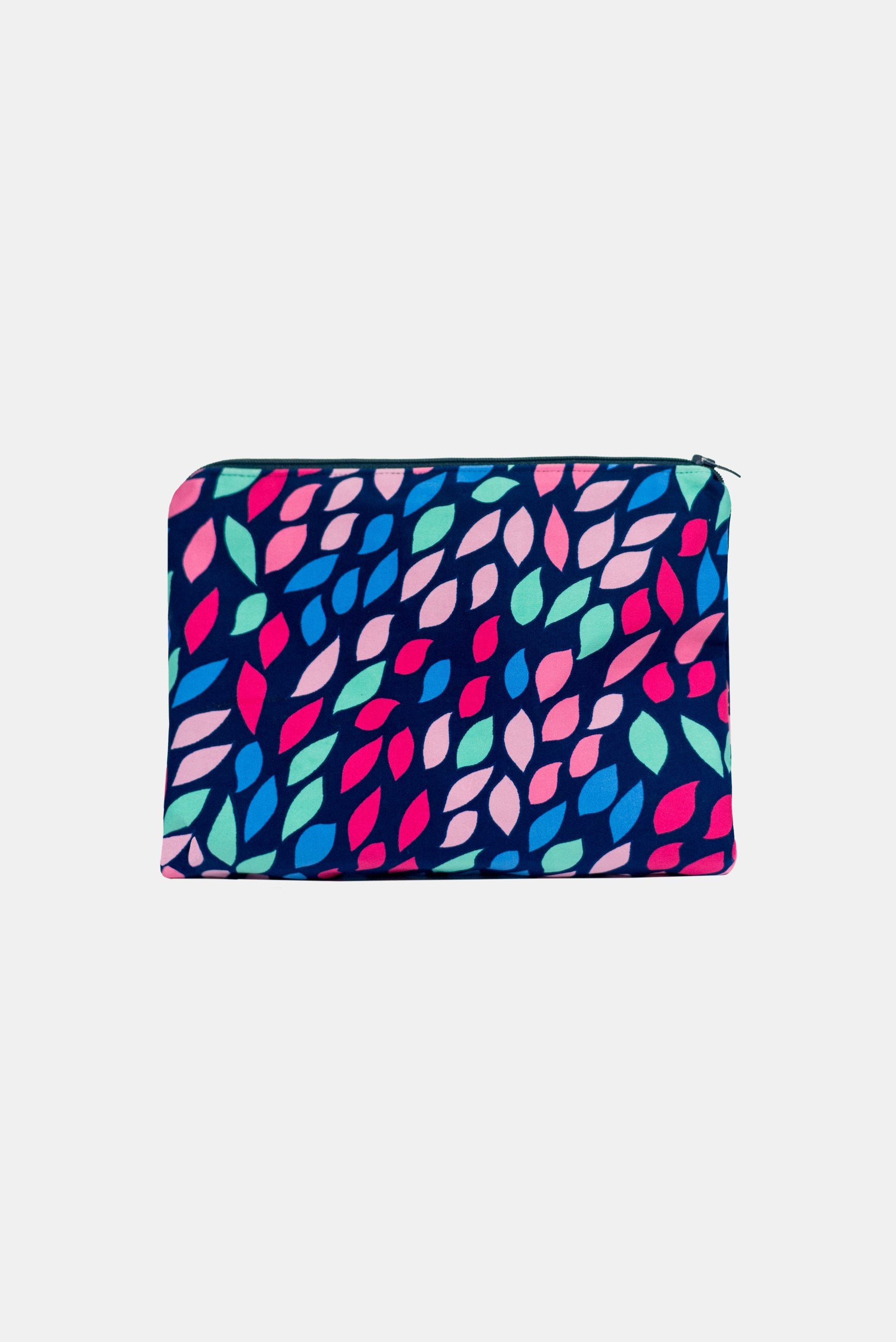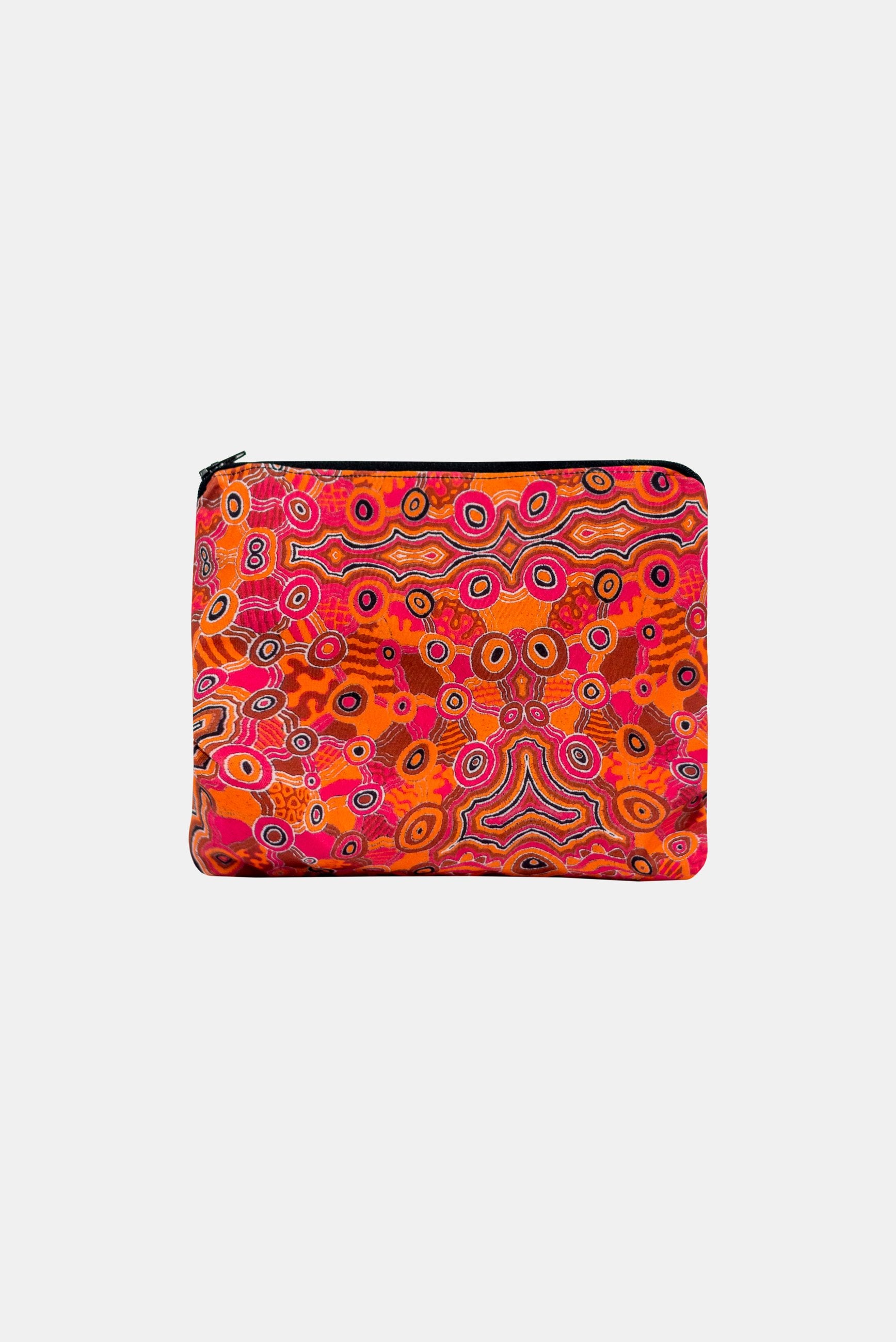 We use our sampling fabric ( bright digital printed poly/spandex) to make these bags and line the inside with a lovely matching cotton fabric finished with a zip.