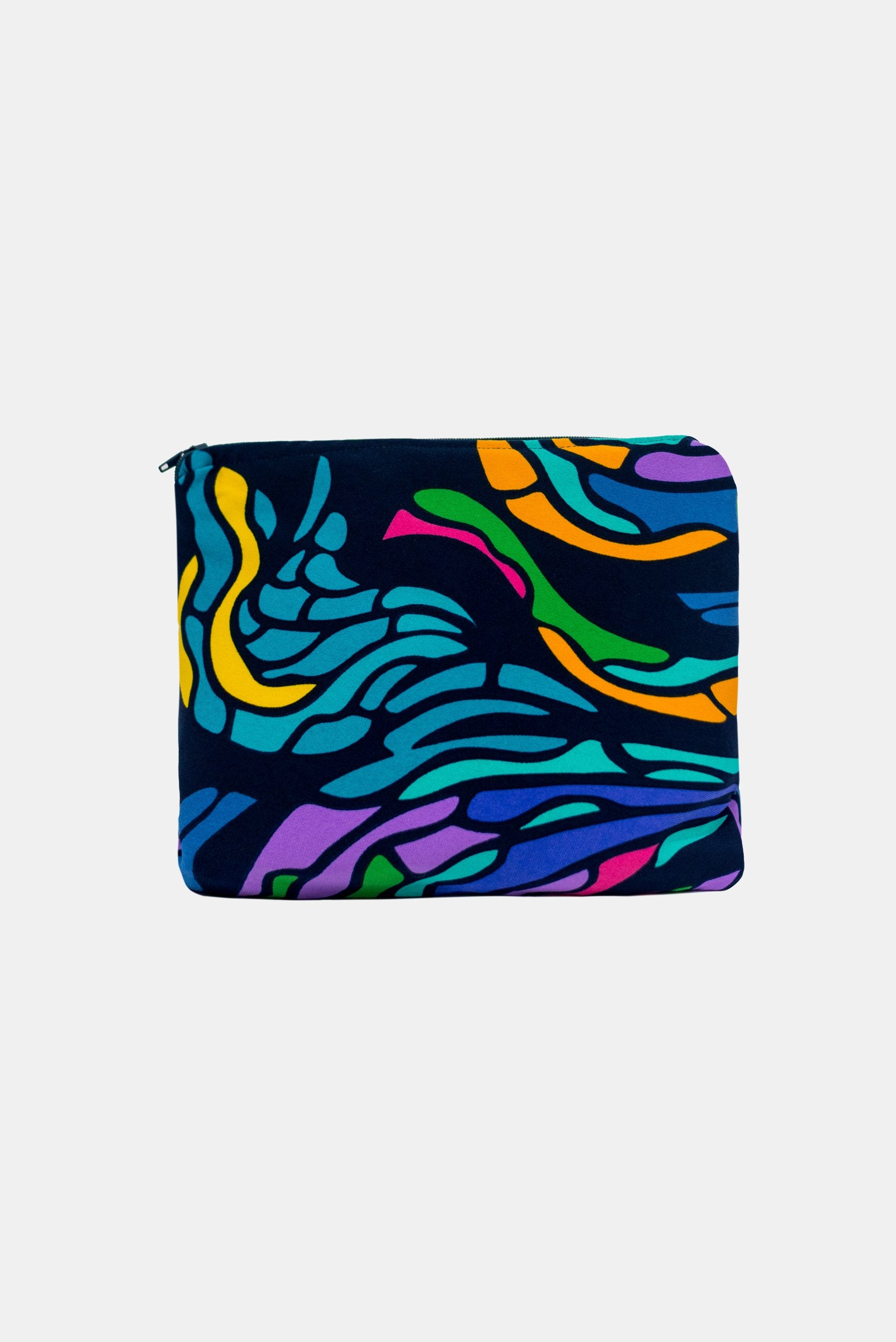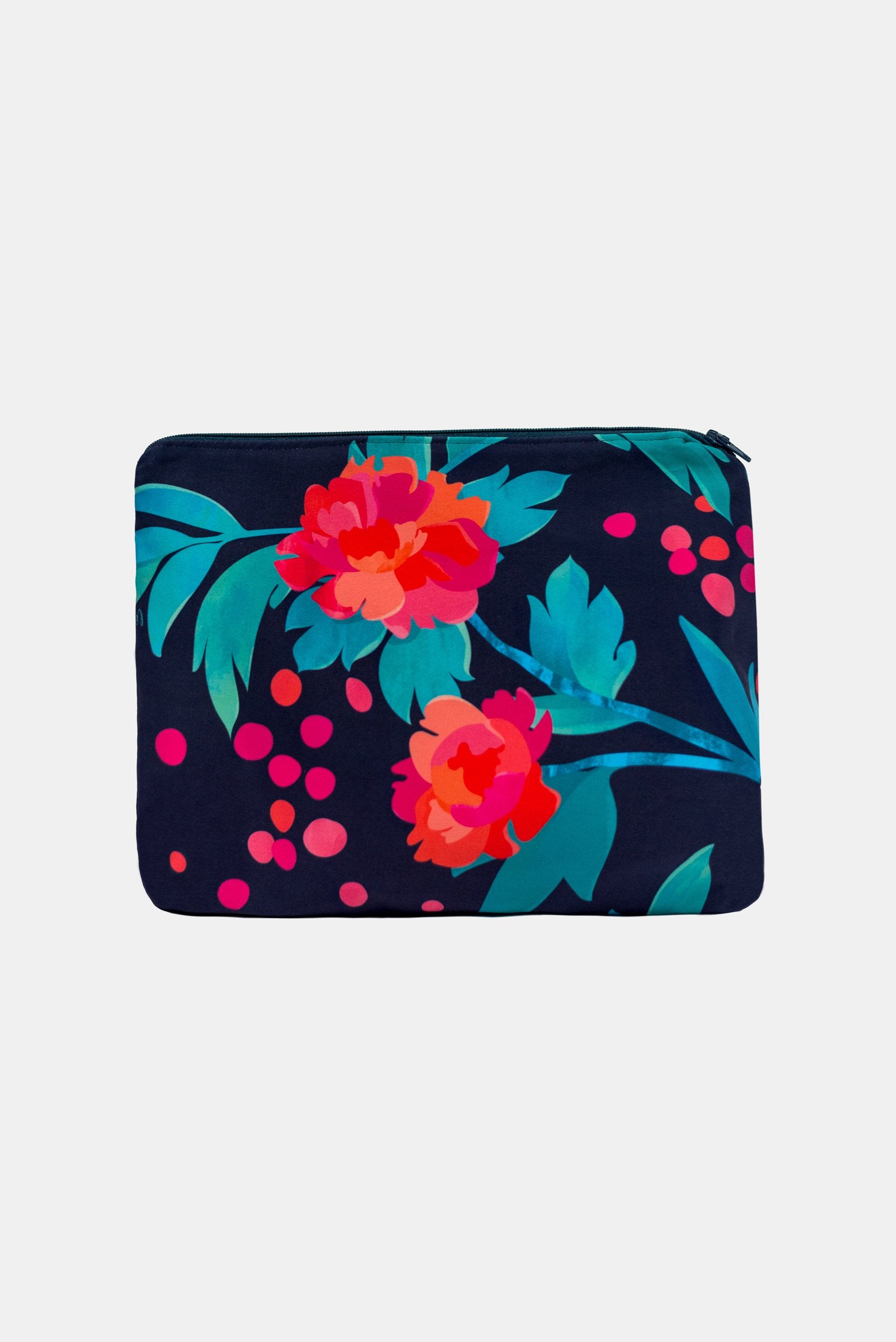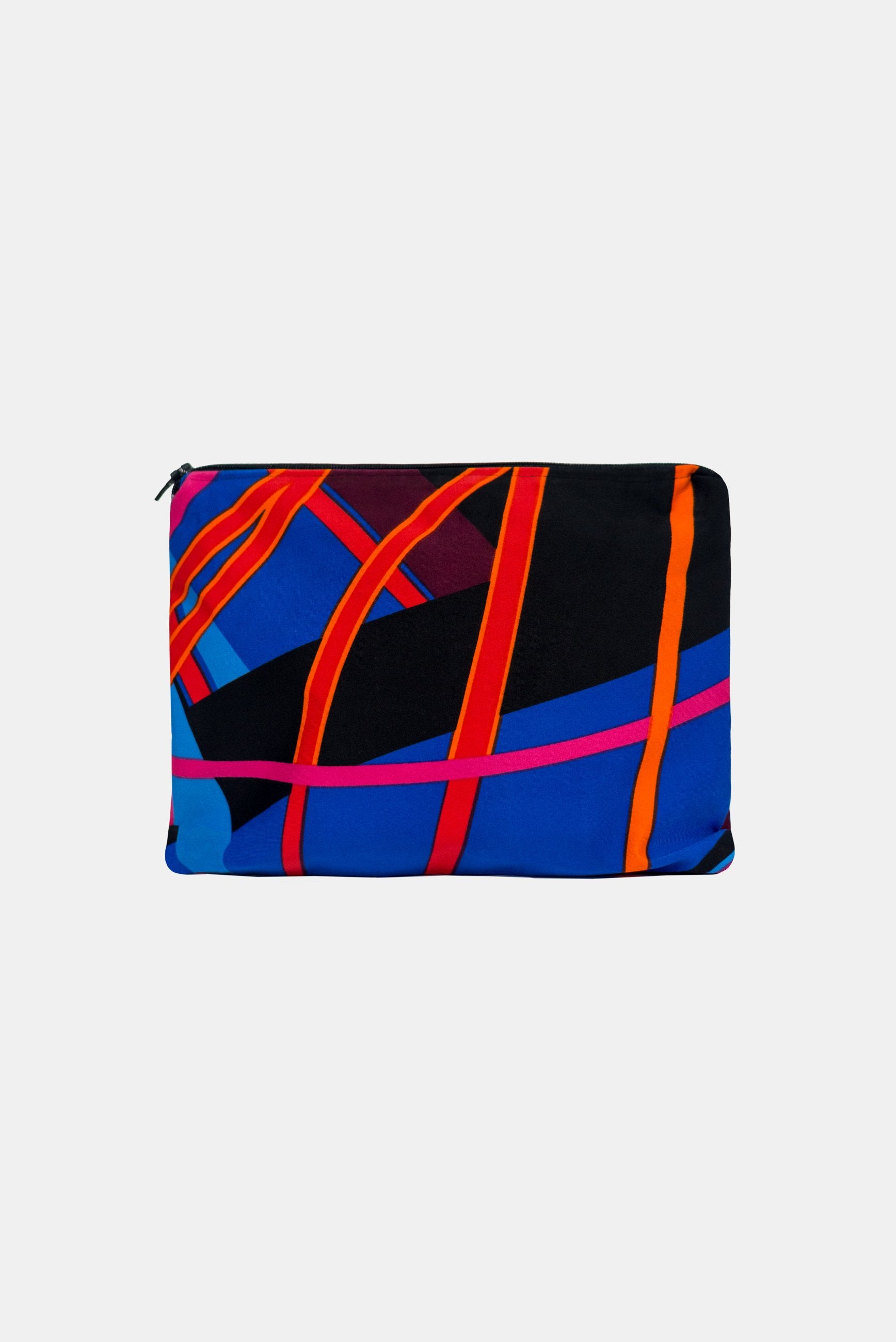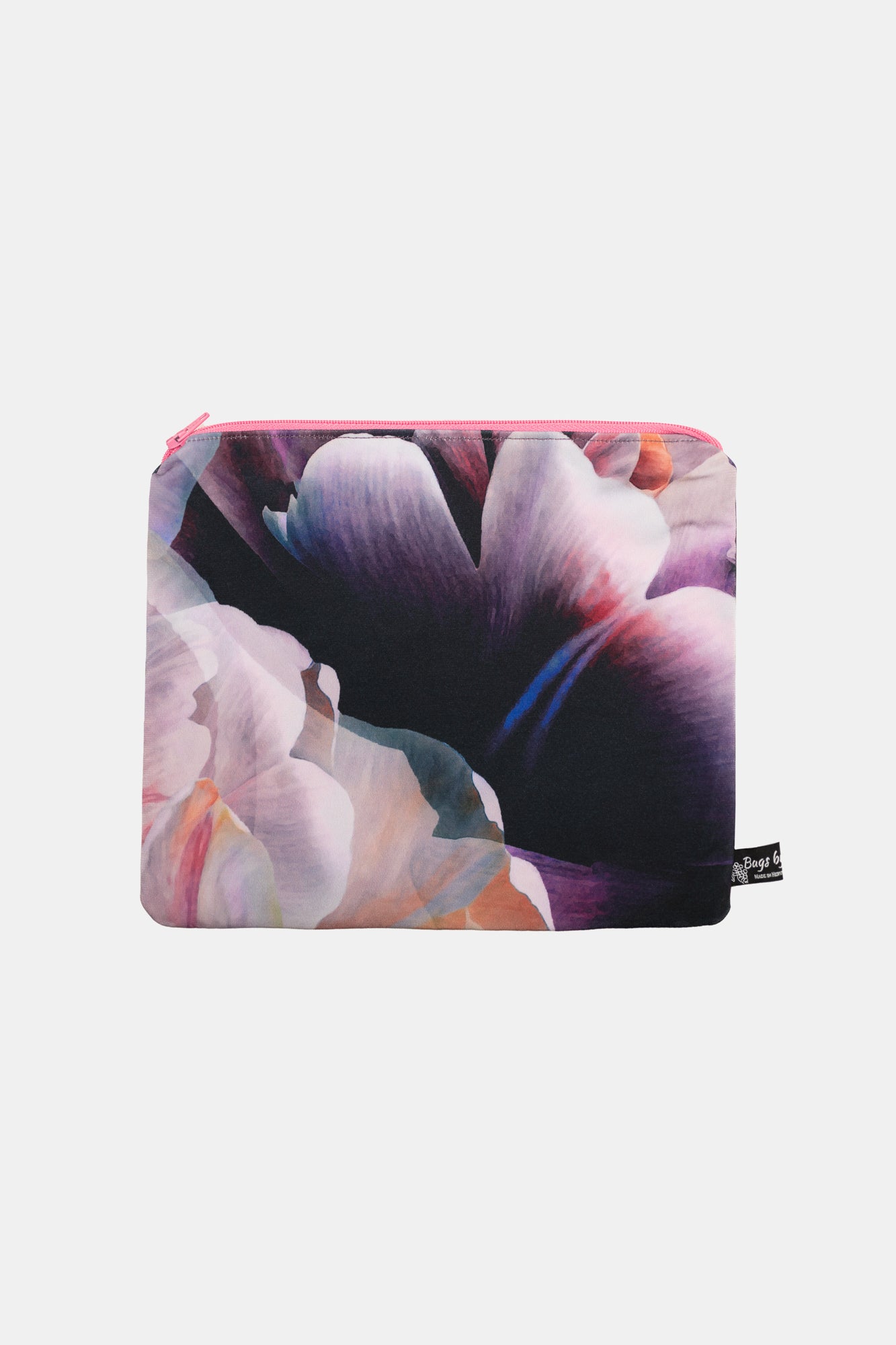 We use our sampling fabric ( bright digital printed poly/spandex) to make these bags and line the inside with a lovely matching cotton fabric finished with a zip.