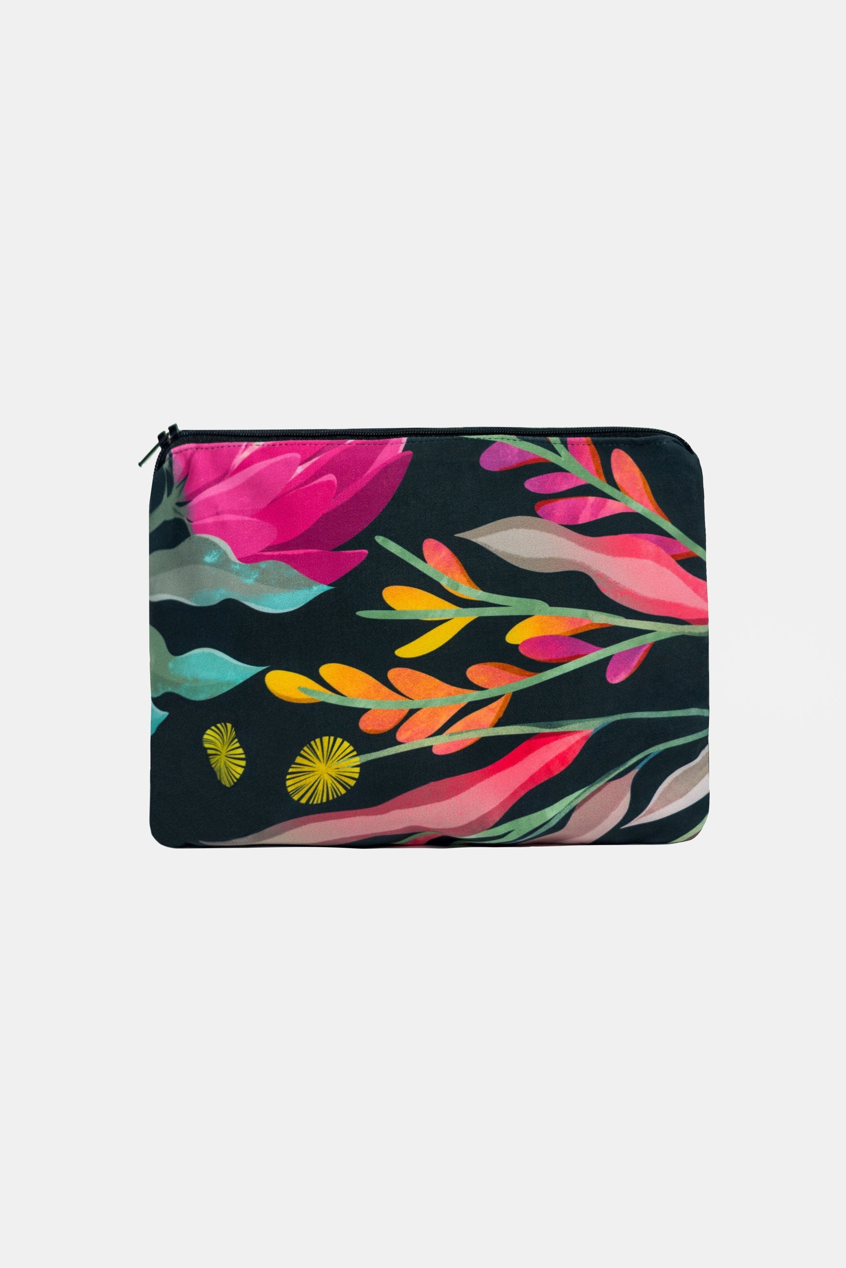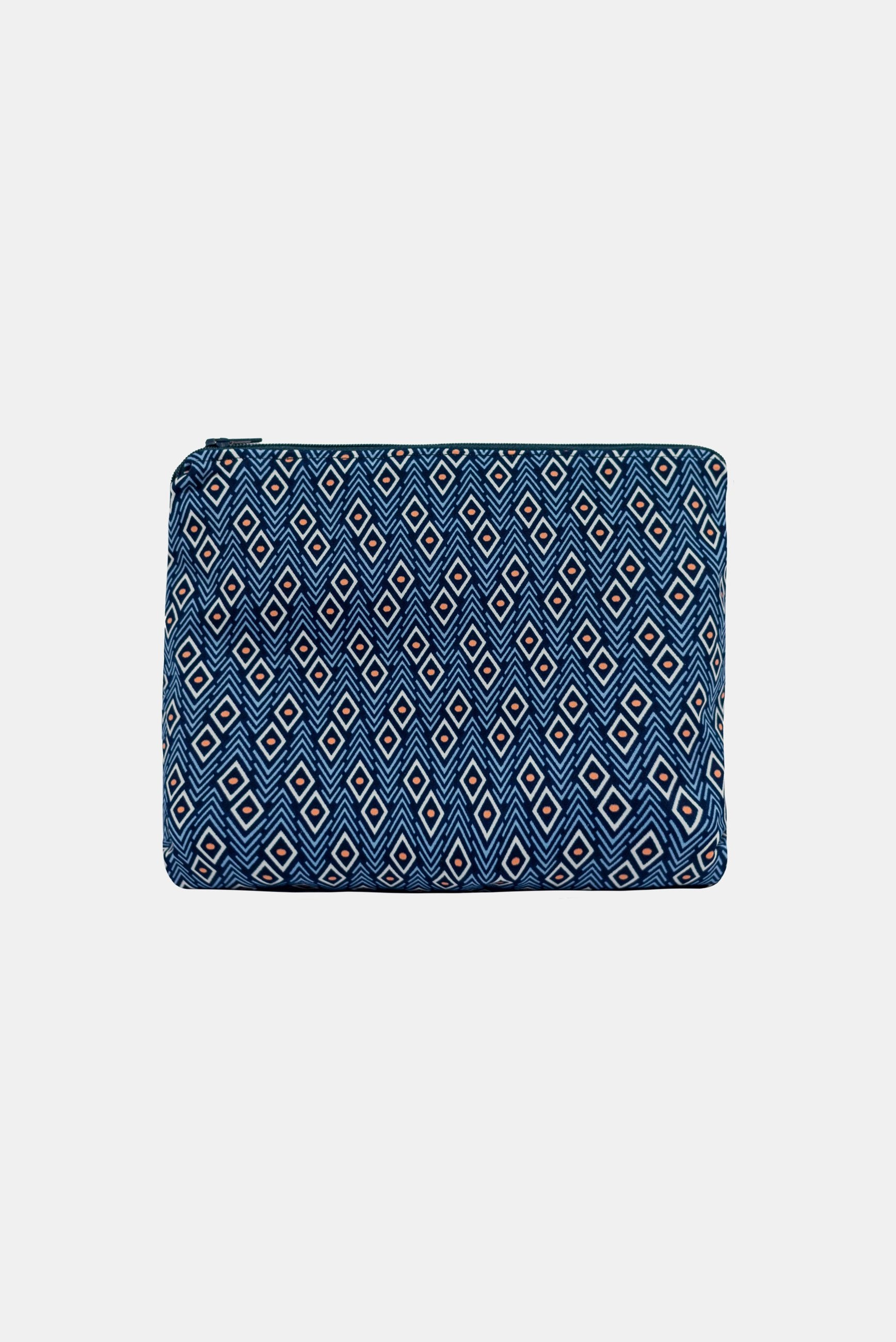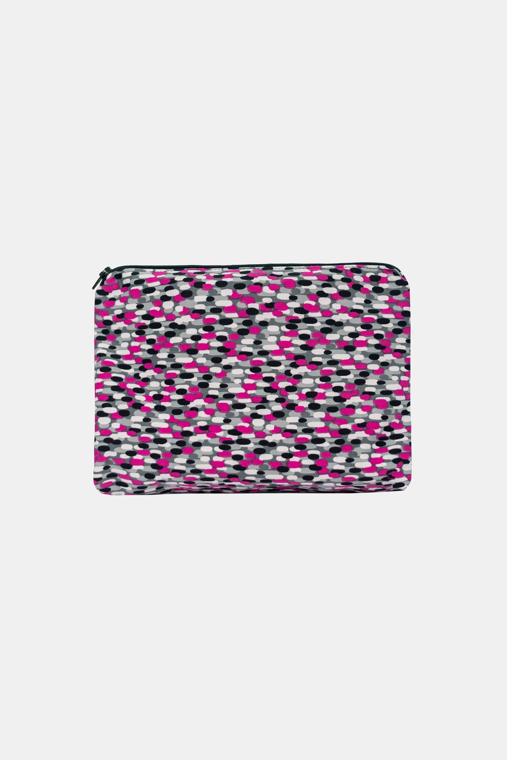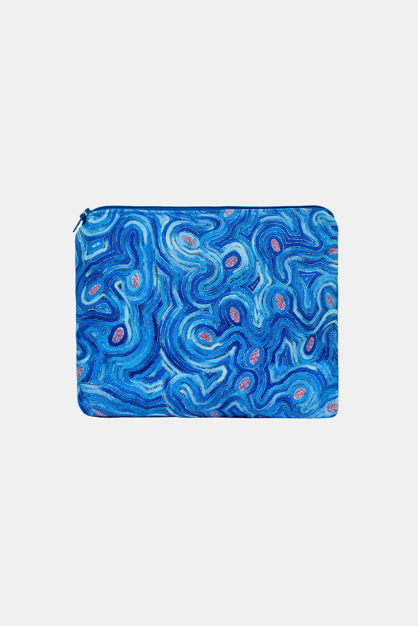 We use our sampling fabric ( bright digital printed poly/spandex) to make these bags and line the inside with a lovely matching cotton fabric finished with a zip.