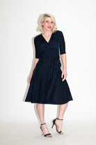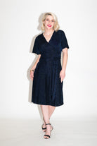 Sophisticated and statement-making, the Katie Wrap Dress is a royal elegance in a rich sapphire tone. This navy sparkle dress moves with grace and has that gorgeous swoosh effect thanks to its liquid-feel fabric. A dream choice for dressing up and feeling amazing.