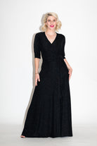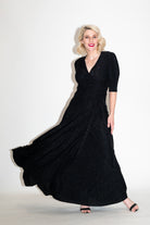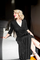 A little black dress with a serious upgrade. The Liza Wrap Dress is elegant with an edge, made in a twinkling black sparkly fabric that adds mystery and magic to every step. With its timeless silhouette and soft, flattering drape, it’s your go-to for events where sophistication meets sparkle.