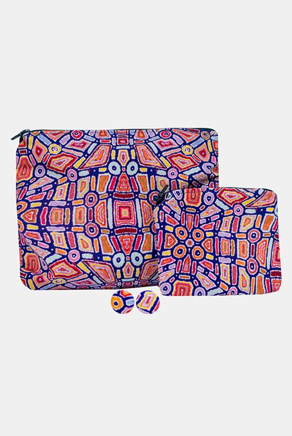 To celebrate the collaboration with Warlukurlangu Artist's Centre, we're including a complimentary little lipstick purse / multi purpose purse with every wrap-dress purchase. These pouches are made from off-cut fabric that would normally be wasted during production.
