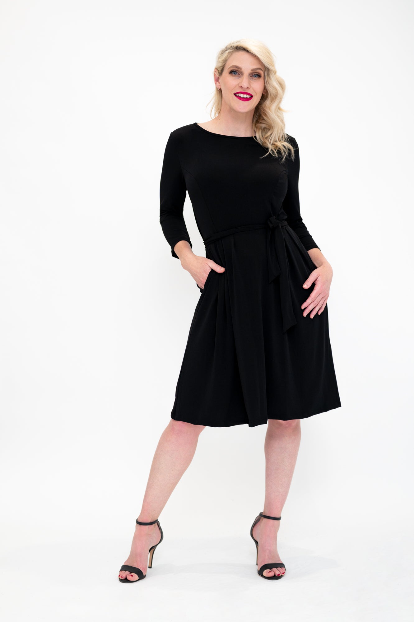 Fitted with two pockets, 3/4 sleeves, a scoop neckline and a waist tie fitted at the centre back of the bodice, the Lana is easily styled for the office or work environments whilst also being a great casual option.