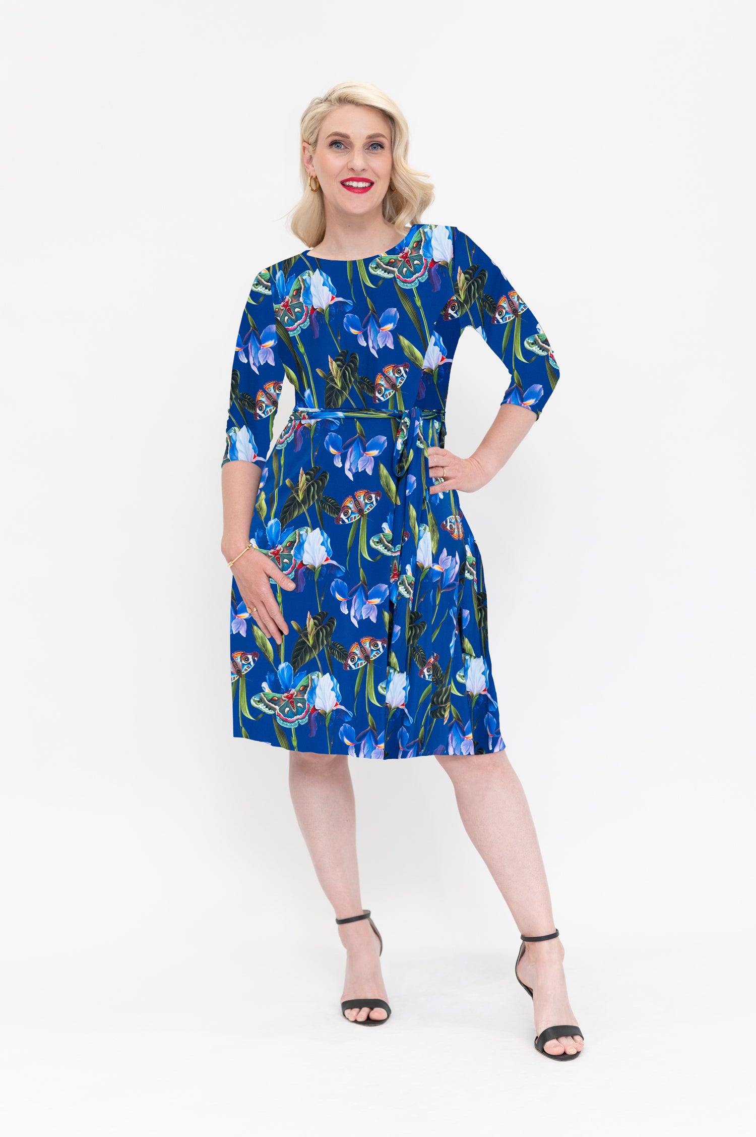 Fitted with two pockets, 3/4 sleeves, scoop neckline and a waist tie fitted at the centre back of the bodice, the Lana is easily styled for the office or work environments, whilst also being a great casual option.