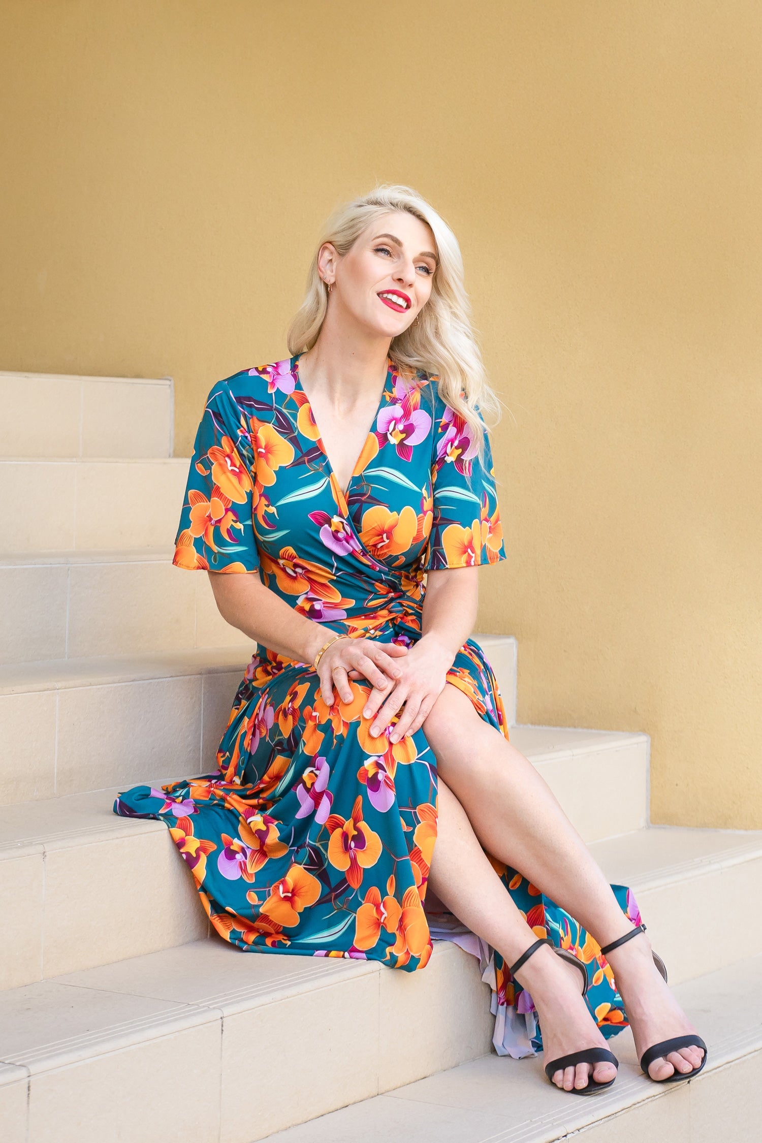 From midi-length jersey wrap dresses to bamboo t-shirts, our designs are crafted for comfort and style. Perfect for corporate officewear, cocktail events, or casual outings, this collection features flutter sleeve, sleeveless and 3/4 wrap tops and maxi skirts that flatter every body shape.