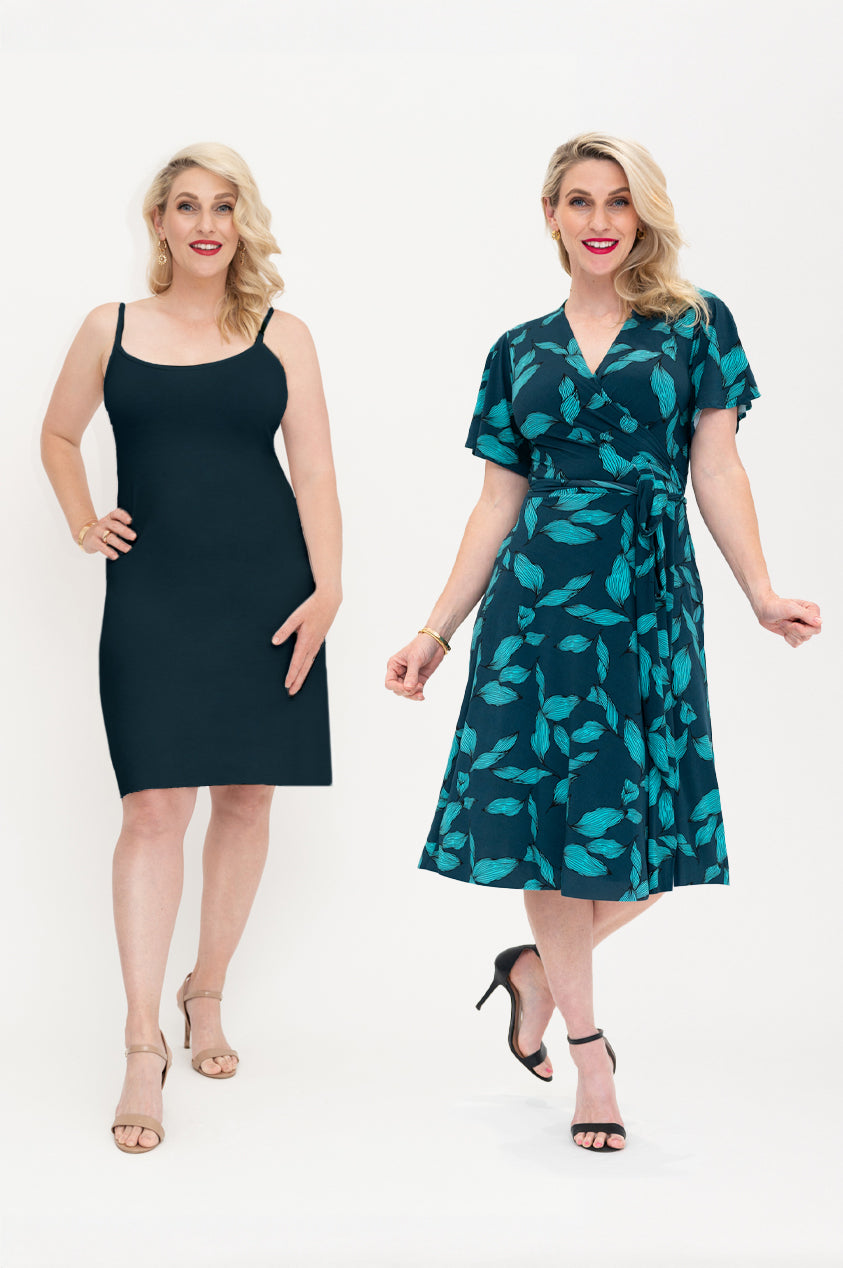 Our slip dresses have been designed to be worn under our wrap dresses.