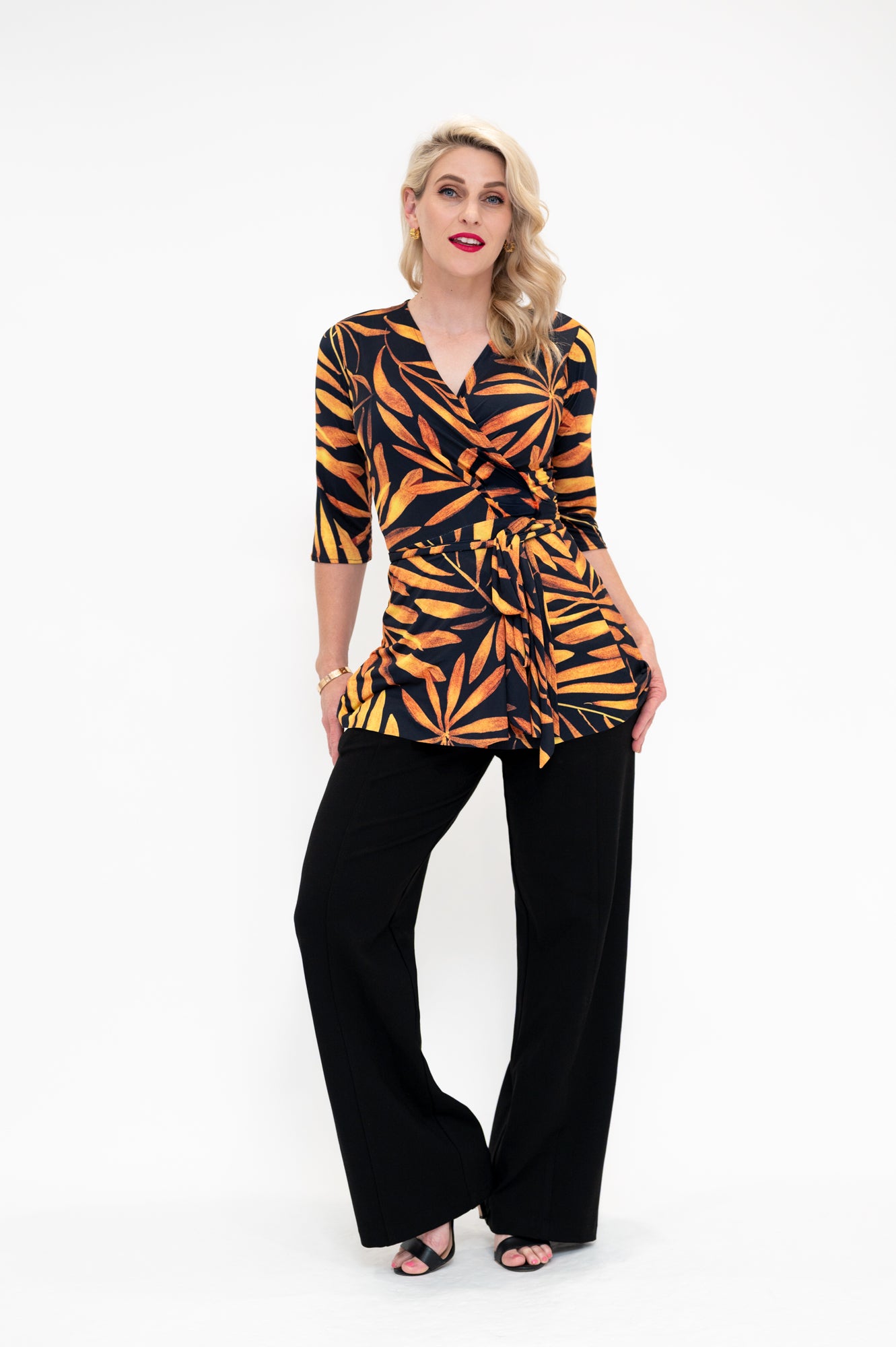 Perfect for plus-size and curvy figures, our wrap top enhances your natural lines and creates a flattering, balanced silhouette.
