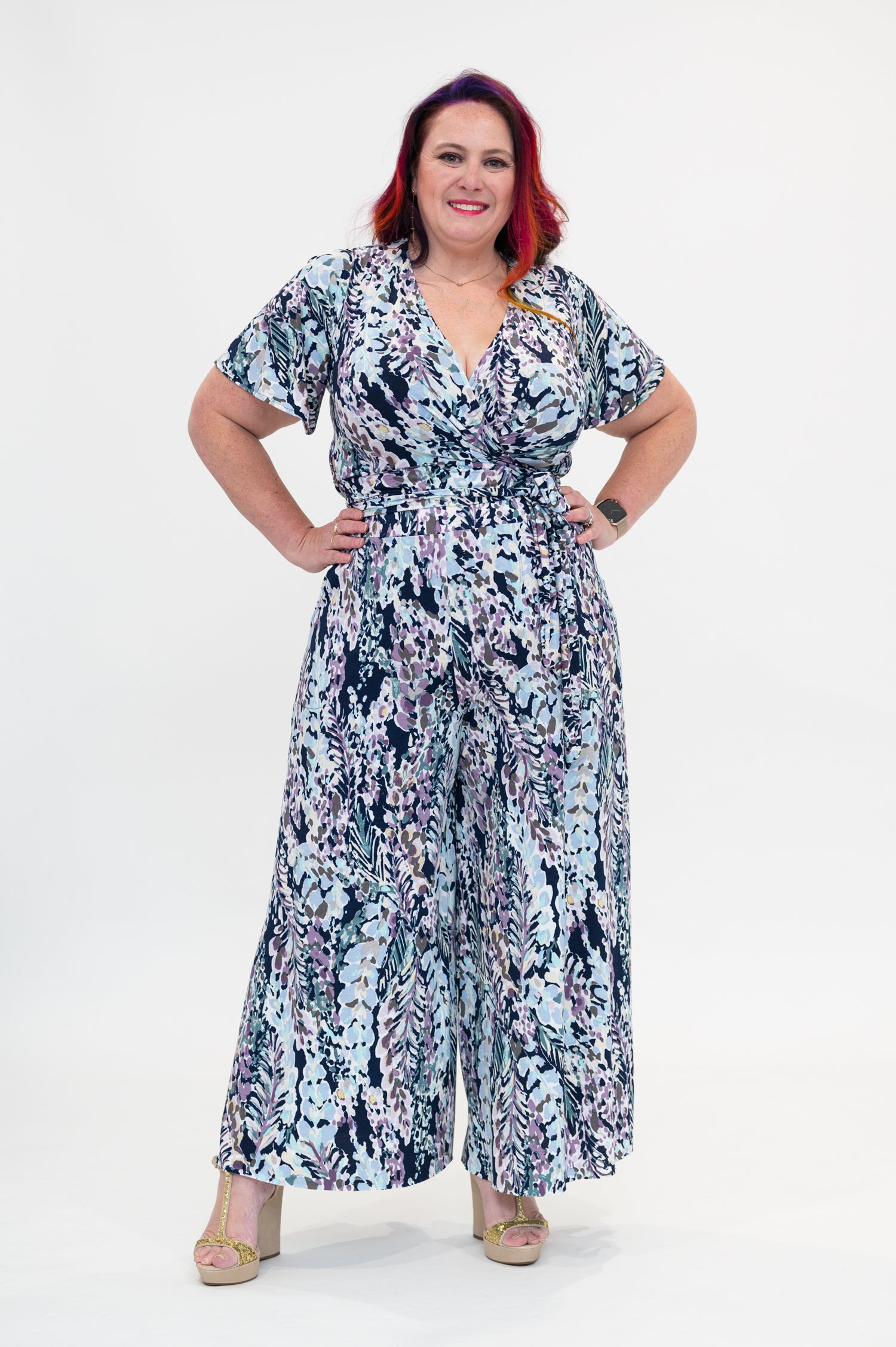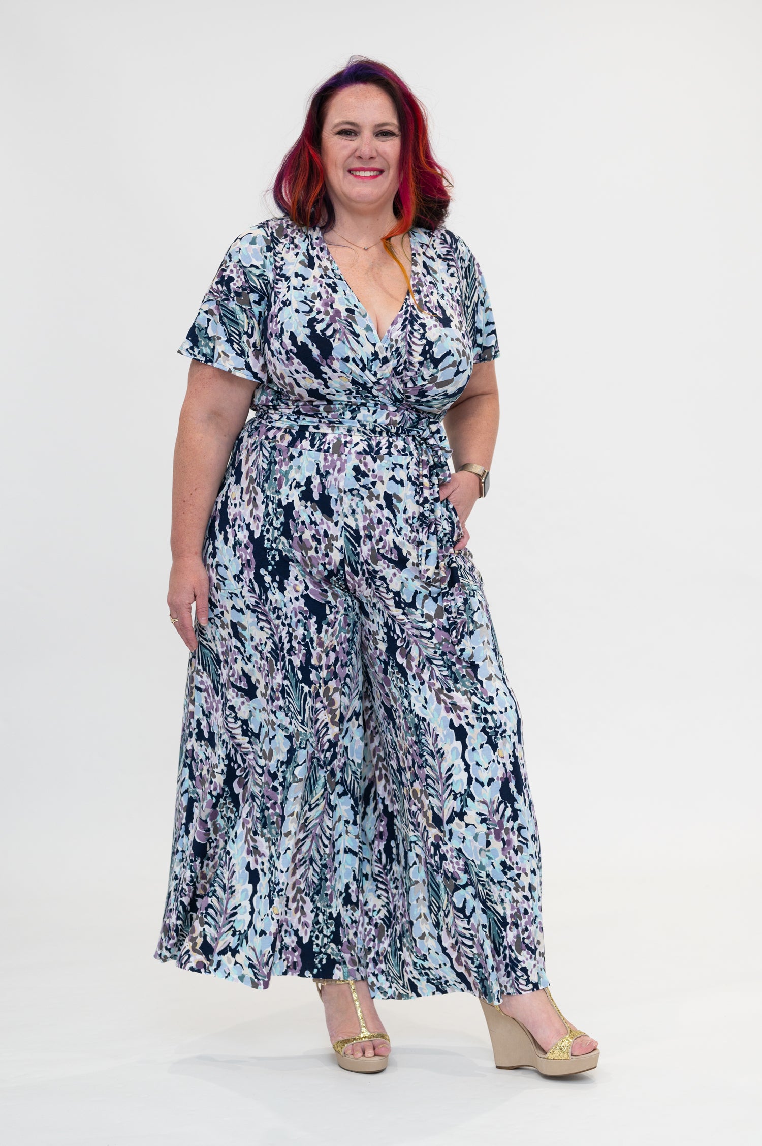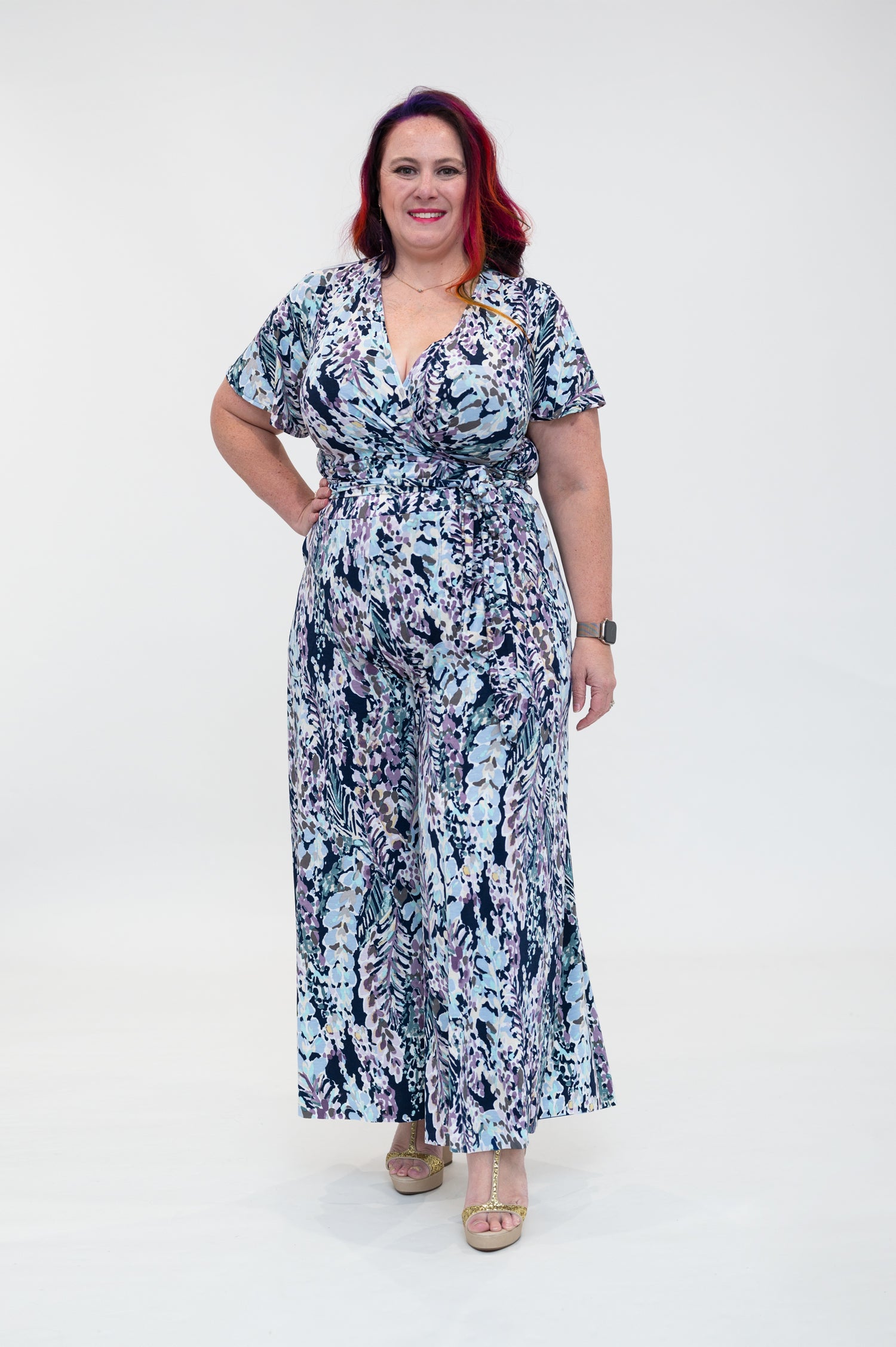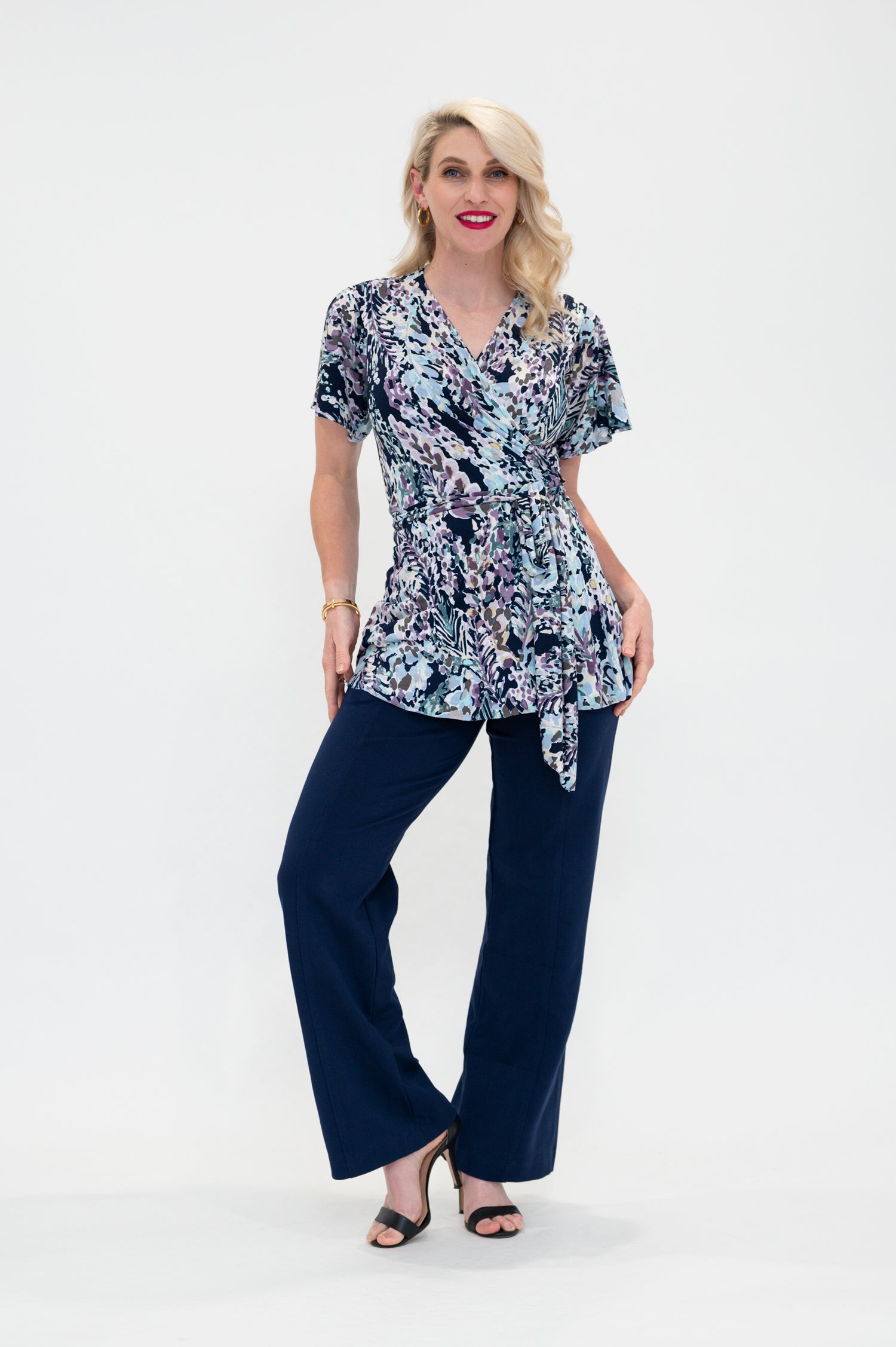 hydrangea Wrap top is available in regular and plus size dress options this variant is the flutter sleeve